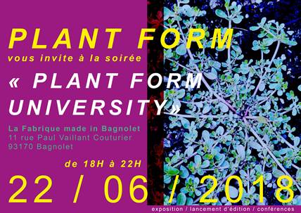 La soirée Plant Form University vient réunir membres et acteurs de PSL dans le cadre de l'exposition et du lancement de la publication "Plant Form - Mauvaises herbes & Paysages urbains", projet regroupant scientifiques, urbanistes, designers, géographes, artistes... Venez les découvrir !