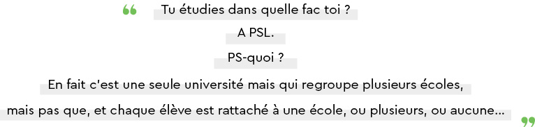 Et voilà, désormais tu sauras – enfin – expliquer à ton entourage dans quelle université tu étudies. Mais pas de panique, tous les étudiants de PSL ont eu du mal à comprendre leur université au début (surtout les étudiants internationaux), cela fait presque partie de notre identité !".